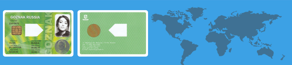 | Goznak es un importante fabricante de tarjetas de identificación y proveedor de tecnologías de identificación produciendo más de 26 millones de pasaportes anualmente, incluyendo 6 millones de pasaportes electrónicos. Los documentos de seguridad utilizan esquemas de impresión y niveles de seguridad muy similares a los billetes de banco.Haga clic aquí para ver algunas seguridades impresas aplicables a sus documentos de identidad.